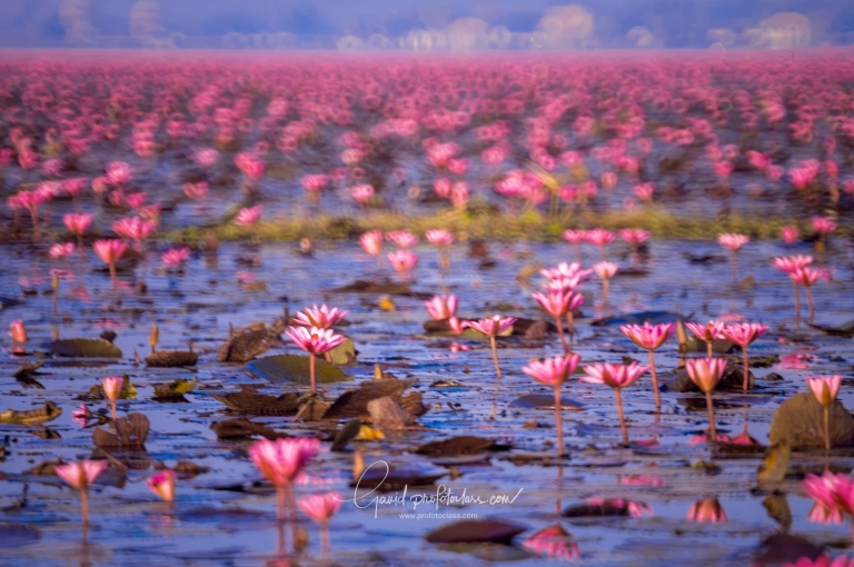 ช่วงนี้ “ทะเลบัวแดง” กำลังสวยและกำลังฮิตเลยครับ เช้าๆ แสงอ่อน หมอกบางๆ ผิวน้ำเรียบ เป็นช่วงเวลาที่ภาพดูนุ่มนวลที่สุดของวัน