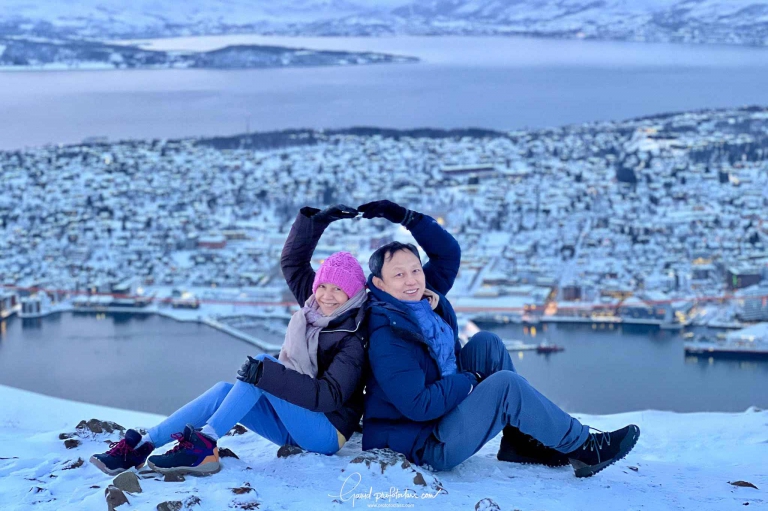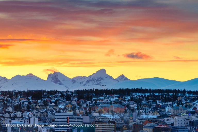 ถ่ายภาพช่วงเช้า จากนั้นเดินทางกลับ Tromso โดยจะเที่ยวในเมืองตามด้วยขึ้นเคเบิลคาร์ไปที่จุดชมวิว ซึ่งสามารถมองเห็นทิวทัศน์ของเมืองและภูเขาที่เป็นฉากหลังสวยงามเกินพรรณา ถ้าสภาพอากาศเป็นใจจะสามารถเห็นแสงเหนือได้จากจุดนี้